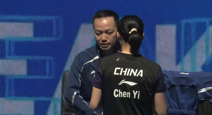二人大比分1:1,第三局陈熠打得急躁2:6落后,任浩叫暂停提醒陈熠“必须沉住气,要有耐心”,陈熠顶嘴说“我没有不耐心!”,最后,把任浩气得只能铁青着脸,眼睁睁看她输掉比赛。